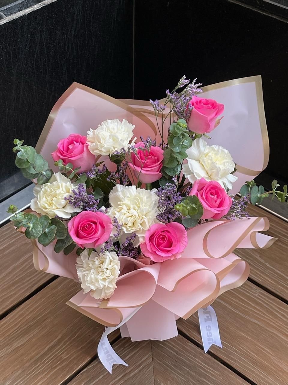12 ROSES AND CARNATIONS WITH Eucalyptus LEAVES